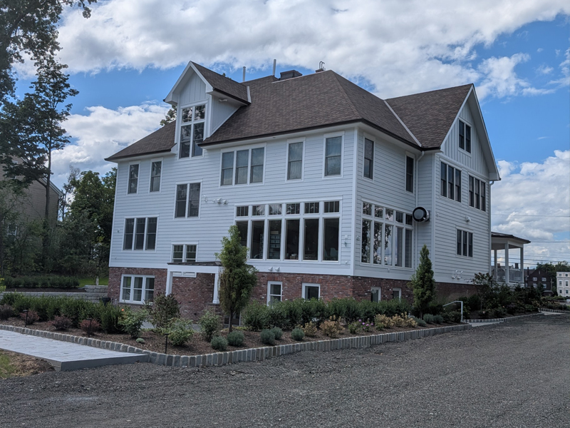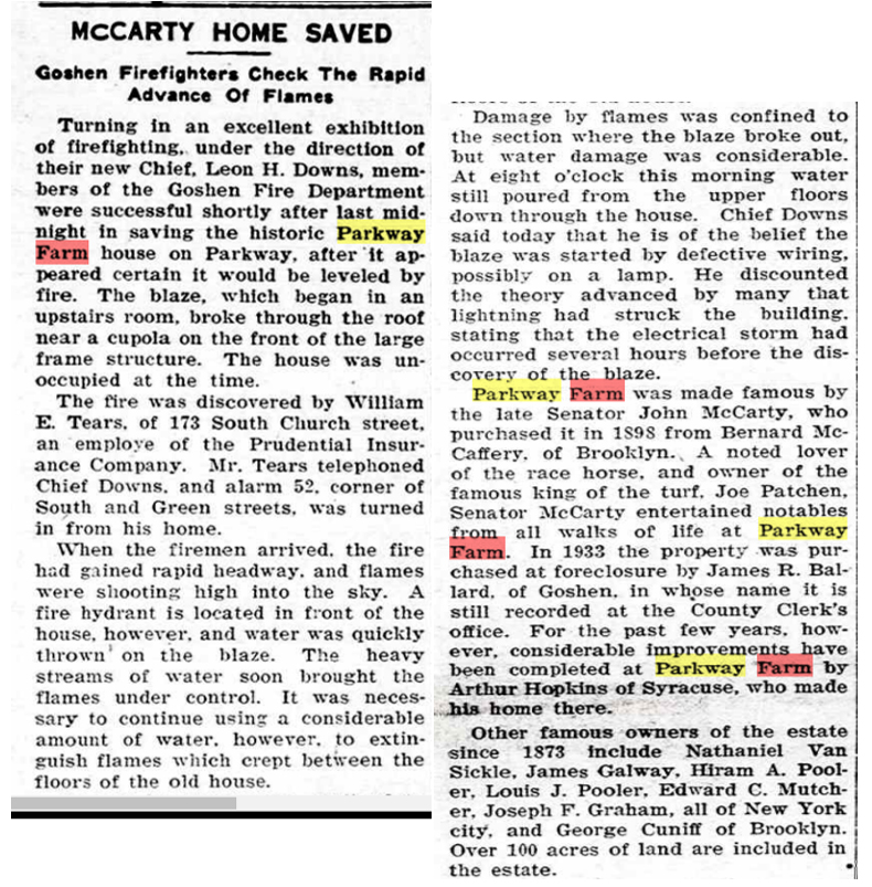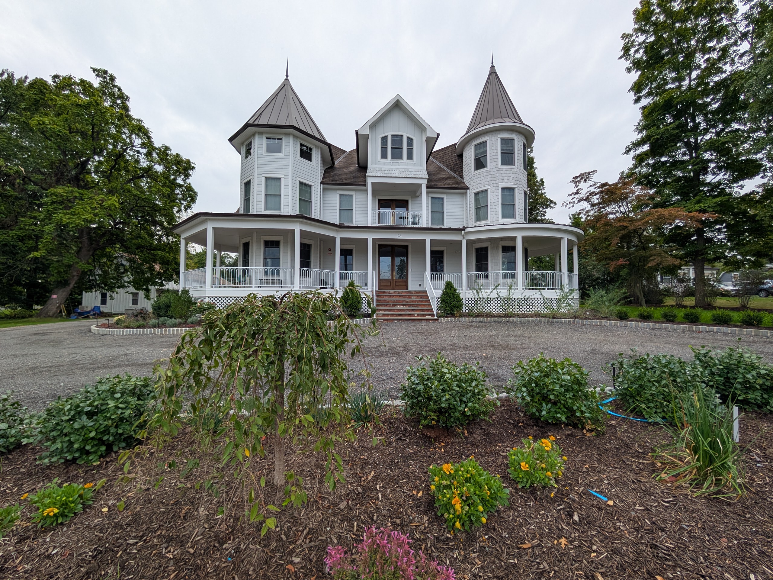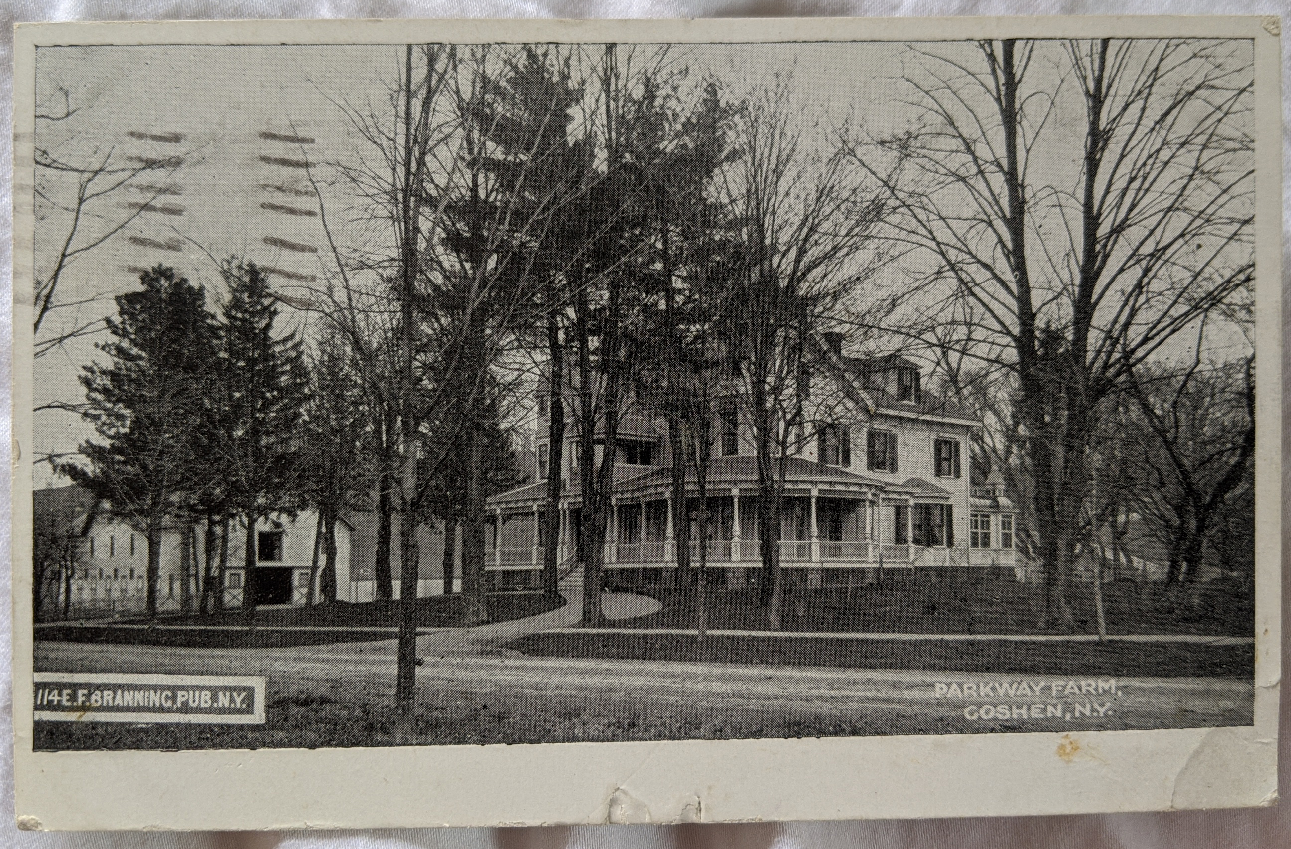 We started with the Carriage House / Historic Barn on the property first to see if this was going to be a good idea, gain experience in hospitality, and fund the project in the big house. Back in the day this property was called Parkway Farm and we contacted the Goshen Public Library and Historical Foundation attempting to find original photos of what the property looked like back at the end of the 19th century. With the help of our wonderful neighbors and research we were able to find a few images to help bring it back, but one item we were missing was what the original house looked liked back in the day. Many old photos of the house was blocked by trees, but through a random search on Ebay we found and purchased an original postcard dated back to 1905. We think it was taken from the Goshen Historic Track, the world’s oldest active harness racing track and is still our beautiful view of race horses practicing on a daily basis. We did some research of similar homes and visited Saratoga, NY and captured photos of details we could not see up close in the postcard and brought them to an architect in Kingston, NY. She was able to reproduce a very close match to what the old house looked like before the 1940 fire, which engulfed a huge part of this home and never fully reproduced until now.